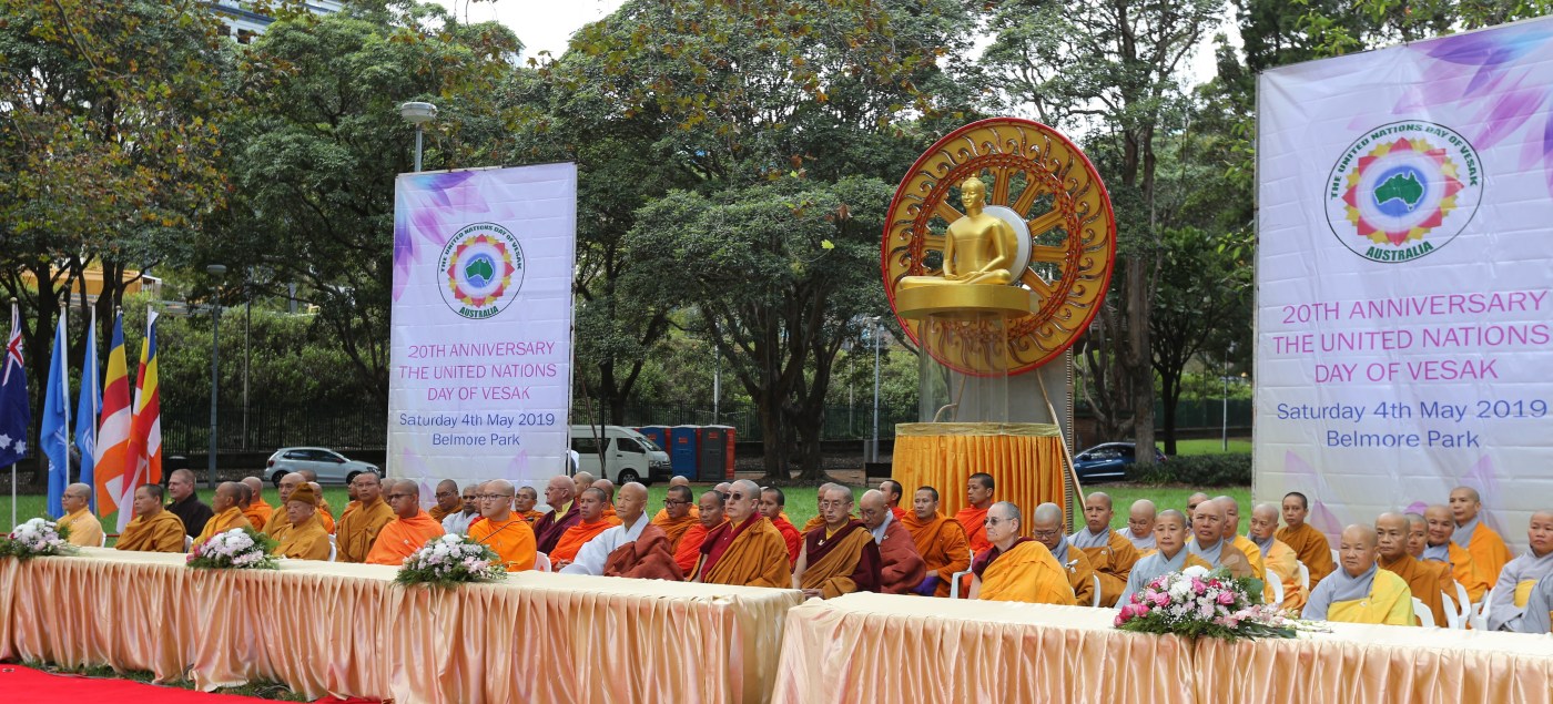 The 2019 Australian Observance of the United Nations Day of Vesak, commemorating the birth, enlightenment and passing away of The Lord Buddha was held over two days, Friday May 3 and Saturday May 4, at Parliament House and Belmore Park, Sydney, respectively.