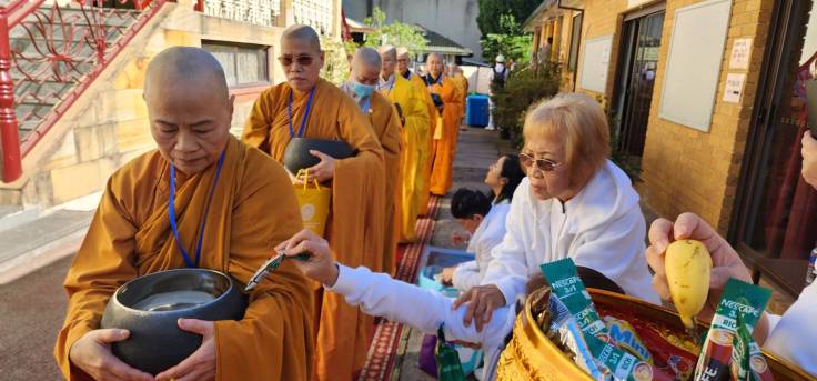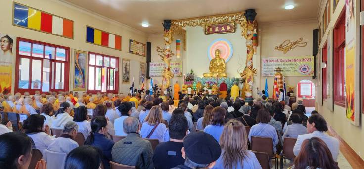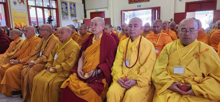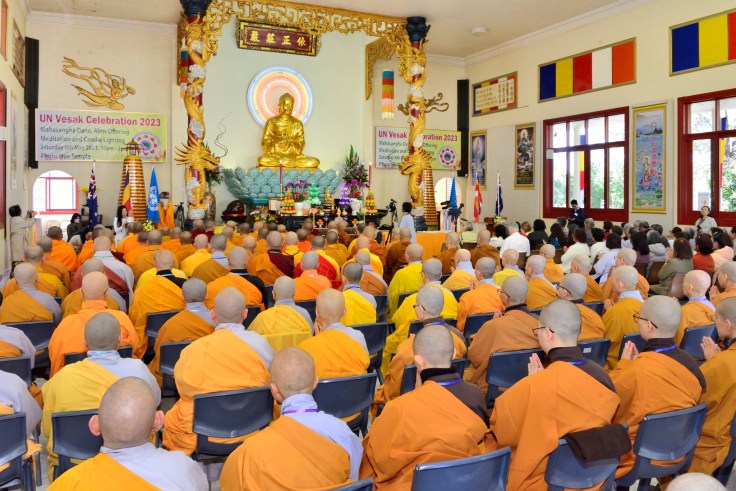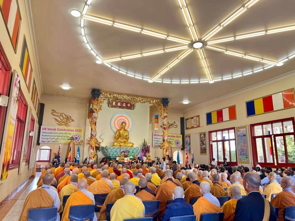 After 3 years absence of, “The Australian Observance of The United Nations Day of Vesak” due to the pandemic, Saturday 6th May 2023 became an exciting day for many Buddhists as they saw more than 100 monks and nuns from across Sydney representing all Buddhist traditions. It was the first time, the UN VESAK celebrations were held at the well-known Vietnamese temple in Wetherill Park. It allowed many Buddhists from near and far to join in various merit making activities such as the offering of Alms, Mahasangha Dana Meditation and Candlelight Offering. The UN representative, Federal and state government representatives also participated in this national level official celebration.