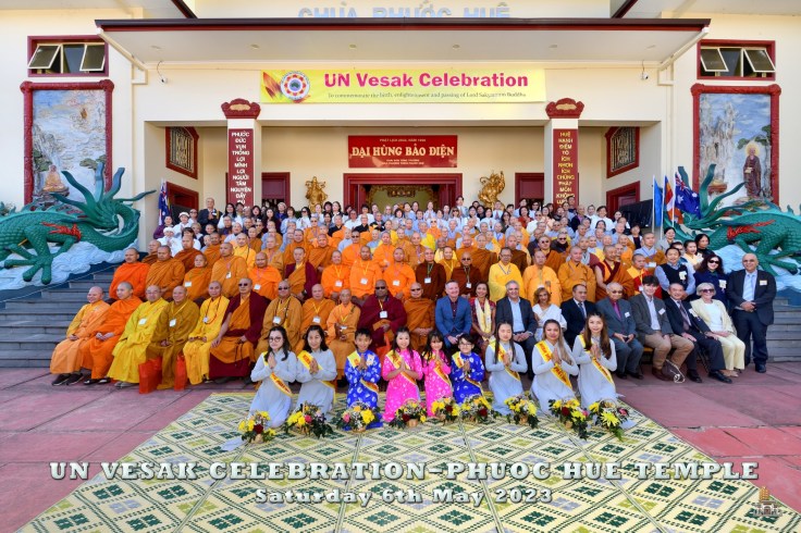The 2023 Australian Observance of the United Nations Day of Vesak, commemorating the birth, enlightenment and passing away of The Lord Buddha was held on Saturday 6th of May 2023 at Phuoc Hue temple. The public celebration was held from 10am to 4:30 pm. The event was well attended by hundreds of enthusiastic and happy Buddhists and Non-Buddhists alike from all over Sydney and Australia.