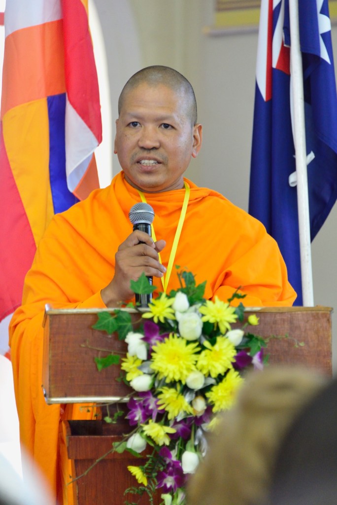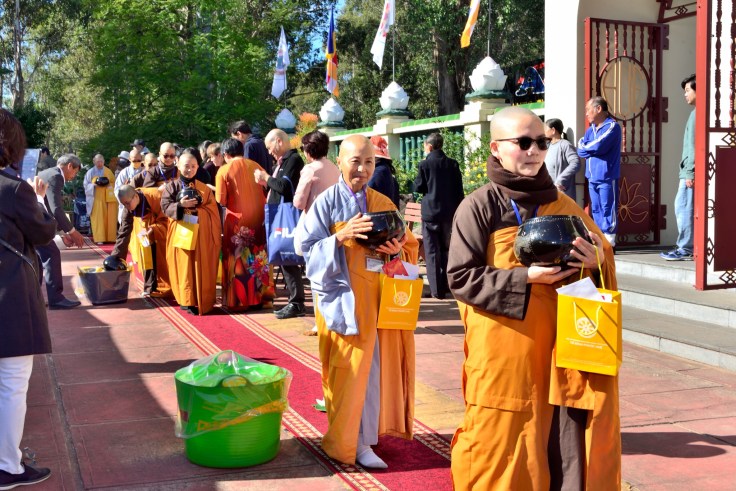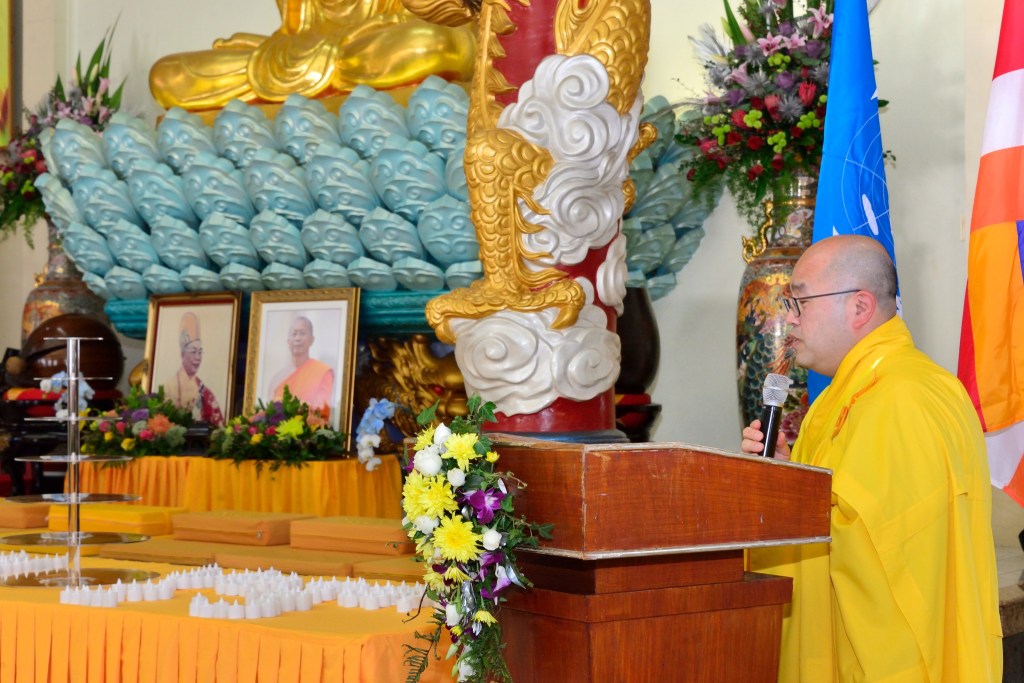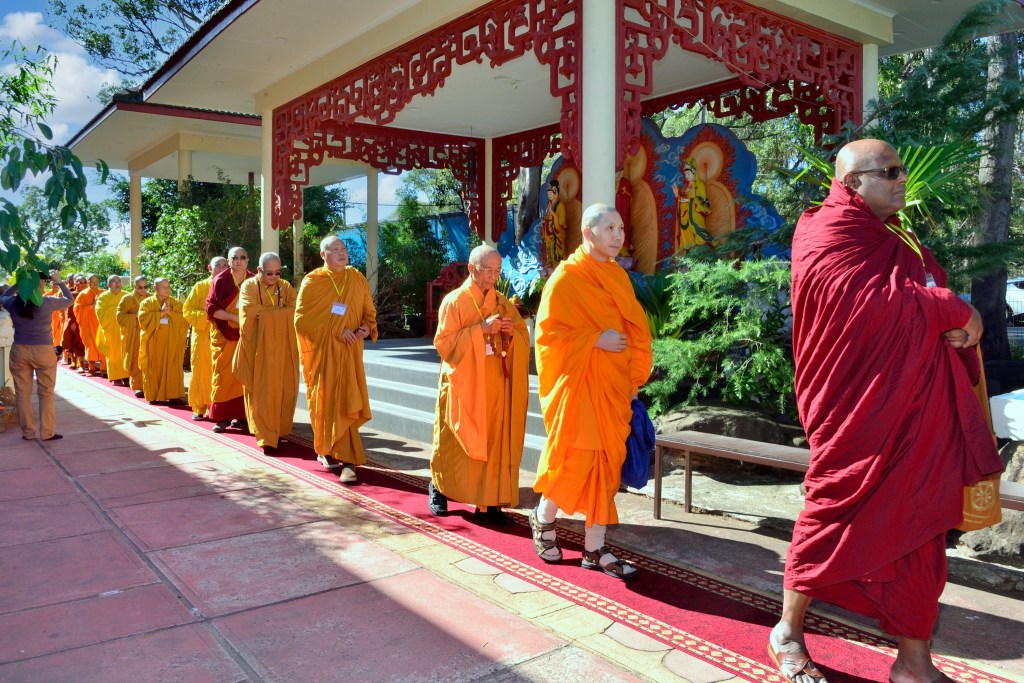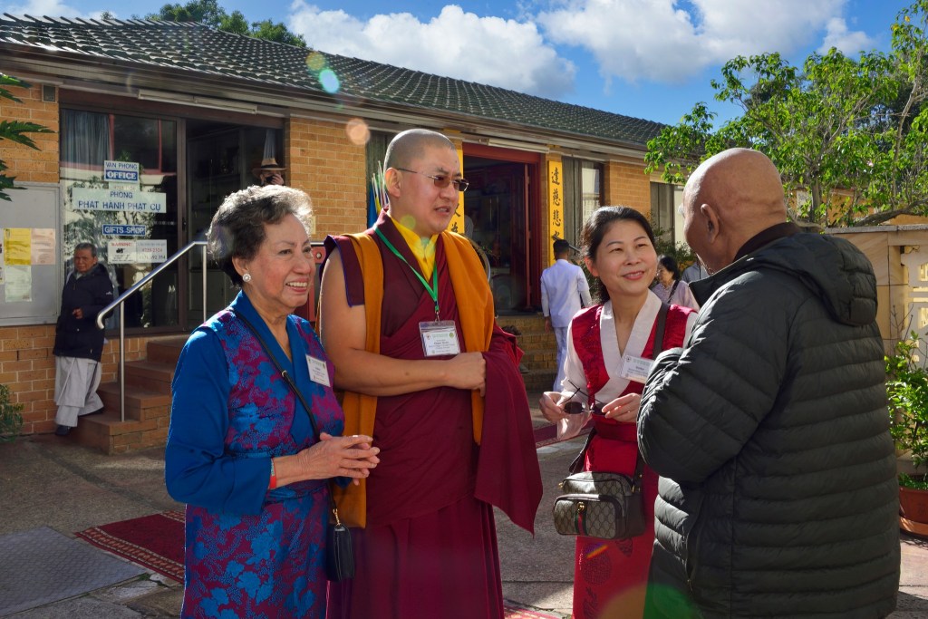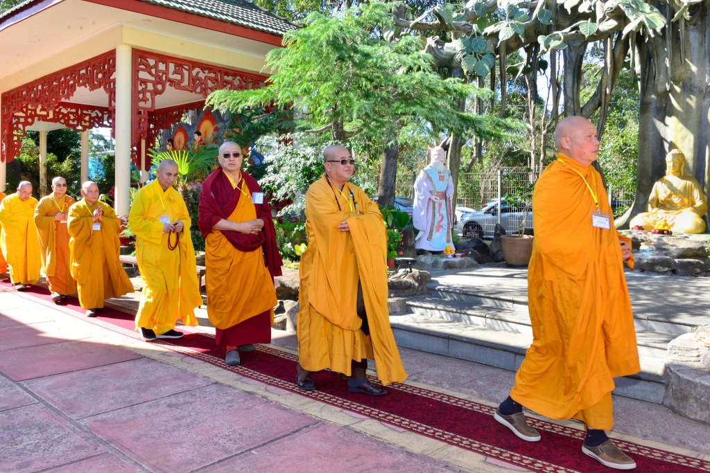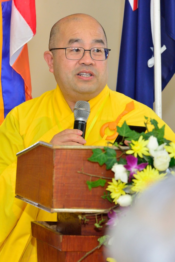 The formal proceedings of this most auspicious event began at 12:30 pm. The procession of the Sangha proceeded to the main hall where all distinguished guests, The UN representatives, Federal and state government representatives, and all attendees were waiting. They rose to greet the Sangha as they entered the hall. When all members of Sangha community and distinguished guests were seated, senior Venerable Thich Phuoc Tan delivered a warm welcoming speech from the Buddhist Federation of Australia(ฺBFA).