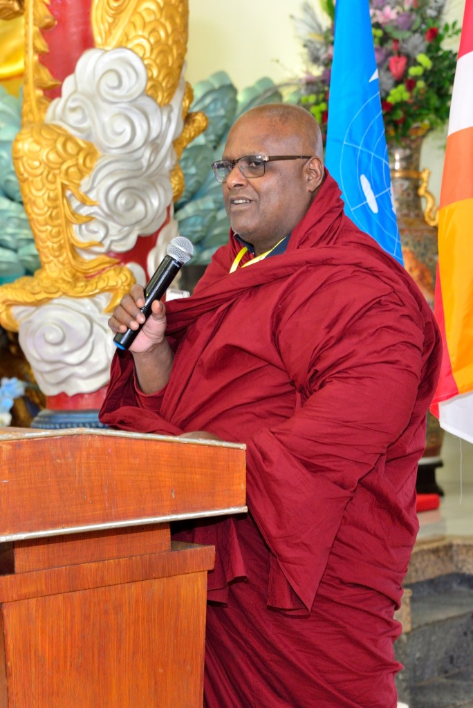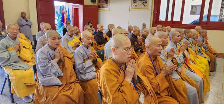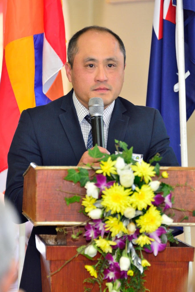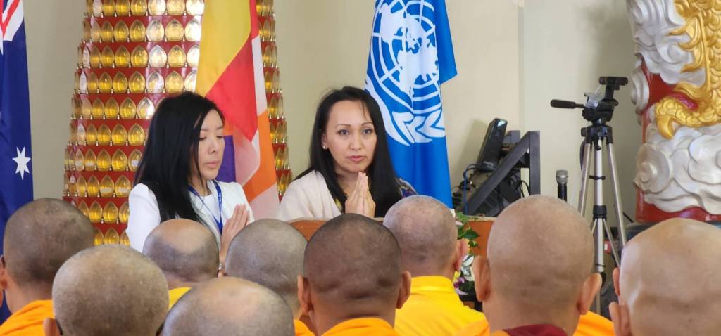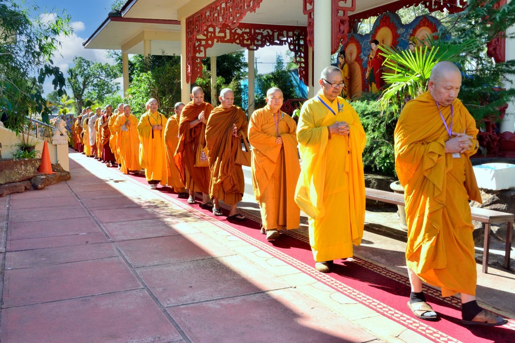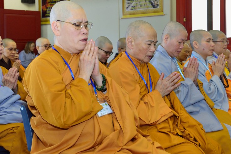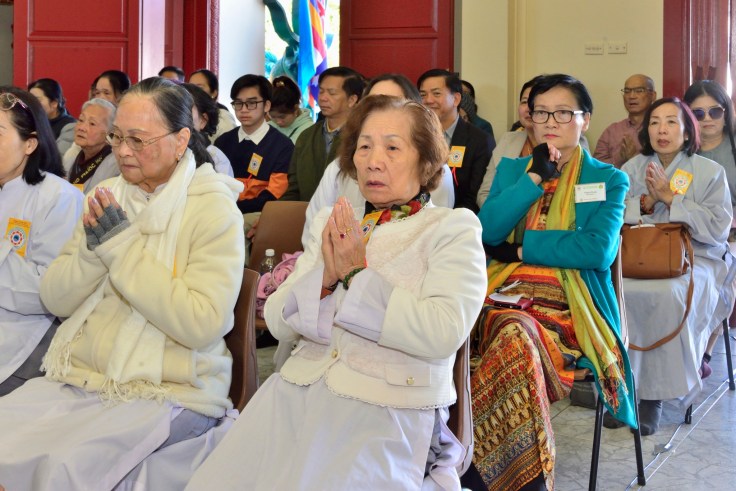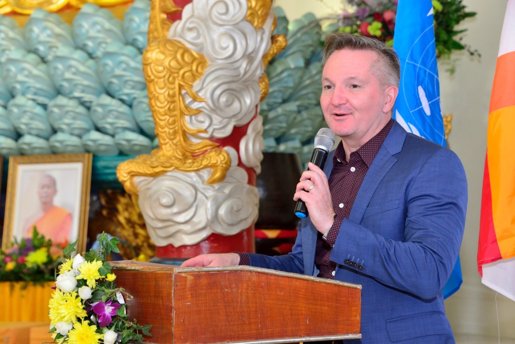 The formal proceedings of this most auspicious event began at 12:30 pm. The procession of the Sangha proceeded to the main hall where all distinguished guests, The UN representatives, Federal and state government representatives, and all attendees were waiting. They rose to greet the Sangha as they entered the hall. When all members of Sangha community and distinguished guests were seated, senior Venerable Thich Phuoc Tan delivered a warm welcoming speech from the Buddhist Federation of Australia(ฺBFA).