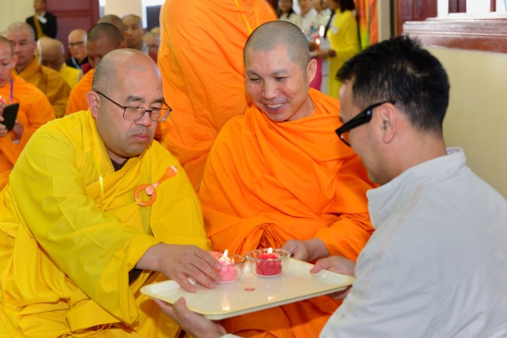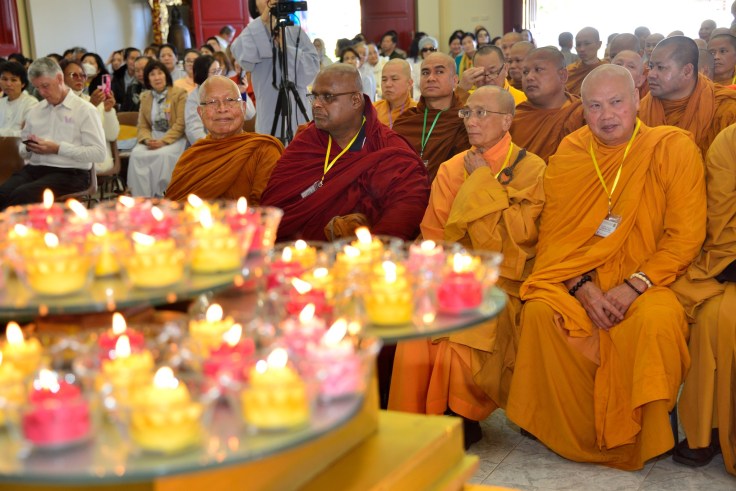After all distinguished guests had delivered their messages, Venerable monks from the three traditions lead the chanting starting from Theravada in Pali, Mahayana in Vietnamese and Vajrayana in Tibetan, participants in the main hall also participated in the chanting. Once the chanting had finished, Venerable Phra Ronrawee the Abbot of Wat Dhammakaya Melbourne and Vice president of BFA guided all in attendance for a short meditation practice. After meditation the candle lighting offering was made to the lord Buddha and Maha Sangha Dana offering was made to the Sangha by the congregation representatives on behalf of all the donors.