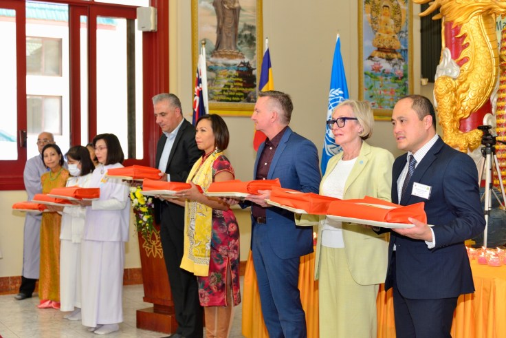 After the welcoming speech, all the distinguished guests, The UN representative, Federal and state government representatives were invited to deliver Vesak messages. The representatives were Dr. Patricia Jenkins-Acting president from UN Association of Australia who delivered the United Nations Secretary-General’s Vesak message. Mr Chris Bowen-Minister for climate change and energy delivered the Prime minister’s Vesak message. A Representative delivered the Honourable Peter Dutton Leader of the opposition Vesak message and Mr Vo Tri Dung-State member for Cabramatta delivered the Premier of NSW’s message.